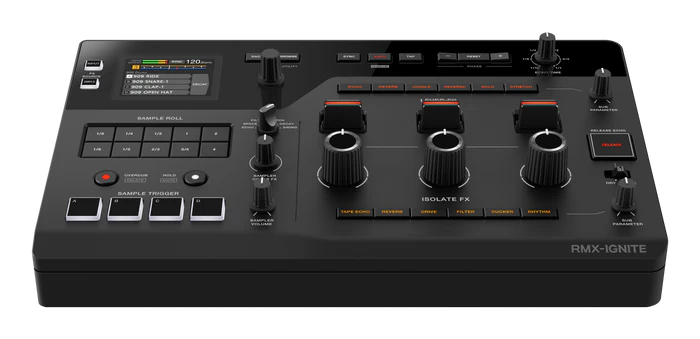 ה-RMX-IGNITE כולל יחידת אפקטים בעלת שלושה ערוצי תדרים המצוידת בשני סוגי אפקטים: אפקטי מנוף (Lever FX), המשנים את הסאונד באופן מיידי כדי ללכוד השראה של רגע, ואפקטי בידוד (Isolate FX), המאפשרים שינויים חלקים ודינמיים. ניתן להחיל כל אחד מהם על תחומי התדרים הגבוהים (High), הבינוניים (Mid) והנמוכים (Low) באופן עצמאי, ולשלב בחופשיות עד שישה סוגי אפקטים. באמצעות בוררי משנה (Sub-parameter knobs) לכיוון גוון הצליל, ניתן לעצב את התפתחות הרצועה ולהגיש הופעות עשירות ומלאות הבעה. הפעולה המושכת את העין של לחיצה על המנופים או סיבוב הבוררים הגדולים לא רק משנה את הסאונד, אלא גם יוצרת הופעה בעלת אימפקט חזותי מרשים.